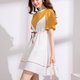 - +Nega C. 休闲圆领滚边拼色连身裙--羌黄色--有里衬+ 可爱又有少些运动风感的连身裙,拼色比较有特色~非常活泼的设计,搭配白球鞋非常可爱哦~有里衬不会透,一点也不尴尬哦~