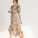 这款宫廷手绘不规则下摆裙以其独特之处吸引众人瞩目。咖色调散发着森林般的清新气息,赋予穿着者优雅的气质。