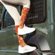 为因应任何场合、任何穿搭,翻转袜独创反折压力袜,可穿至膝盖下方,或者反折至小腿肚,一秒长袜变短袜。