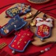 >>挂饰的背后,用传统的"盘金绣绣出了"千财万贯"的字样。