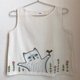 Handmade cotton top original desian by Vilan with cute cat embroider on it. Use natural dying thread for embroider.