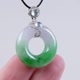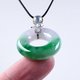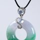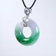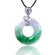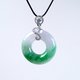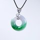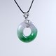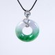 - 【名称】飘阳绿翡翠平安环项链 18K金钻石 【尺寸】整体尺寸:37x26.6x10.1mm 裸石尺寸:26.6x26.6x7.5mm 【产地】缅甸 【颜色】白/绿 【备注】天然缅甸玉翡翠A货/18K金钻石镶嵌/附赠皮绳 【编号】天母店展示