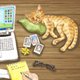 手绘插画万用卡/明信片/卡片/插画卡--陪主人办公的猫