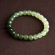 单圈款,天然和田玉青海料手工制作老型珠,质地细腻,水润冰糯,色调渐变流畅!整体色调清新淡雅,大方耐看!