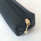 This cute pen case made from black leather and black fastener will stand out on your desk.