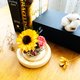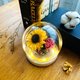 花材:索拉花(向日葵)、永生花(玫瑰)、永生绣球花、法国白梅、尤加利叶、卡斯比亚