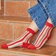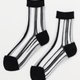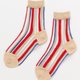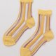 See-through mid-length socks that accentuate your femininity. The stripes are inspired by traditional Basque weaving.