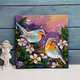 - 原创布面油画,用于室内 "花园里的鸟儿"
