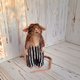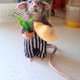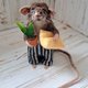 毡鼠 Boryusya。穿着条纹裤子的老鼠,带着枕头和一朵花