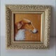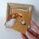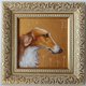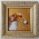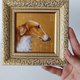 - 小油画与猎狼犬 - 美丽而优雅。 尺寸为 3.9*3.9 英寸(10*10 厘米)。这只猫是在金色背景的纤维板上用油画颜料画的。镶框。