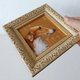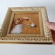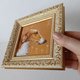 尺寸为 3.9*3.9 英寸(10*10 厘米)。这只猫是在金色背景的纤维板上用油画颜料画的。镶框。