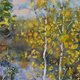 Autumn Painting Lake Landscape Birch Tree 油畫原作 Original Art Nature Plein Air Canvas Oil Impression Impasto Art by Natalya Savenkova