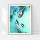 Boats near the reef original watercolor ocean painting, beach wall art , nautical decor over the bed.
