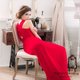 东京衣服 夏日午会 前后交叉抓皱 性感镂空 露背网纱长礼服