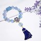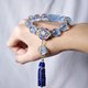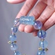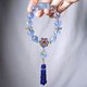 **1.图上海蓝宝珠约13.5mm,海蓝宝回纹珠长约20mm,青金石流苏长约43mm,整体流苏(海蓝宝古钱+青金石)长约76mm,整体手围约16.5cm。**