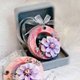 梦幻淡紫加银色枝叶 大理石粉红色镂空圆形吊挂版 吊挂绳及装饰 粉红水钻 精美礼盒包装
