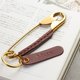 独特皮革包裹黄铜胸针钥匙扣 带可定制姓名标签