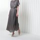 选用舒适的灰绿色搭配柔美的日本银丝面料,婉约富有女性特质,不显浮肿。