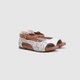 - “海中星星”刺绣凉鞋,以“珊瑚”为刺绣设计理念,正常版型,质感白蜡牛皮,篓空绑带凉鞋。