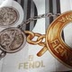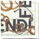 Fendi 丝巾:Logo 印花缀以链条与钱币图案,织纹底蕴,23 x 23 英寸