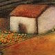这幅山水画羊毛有一个约 2 英寸宽的亚麻织物护照,并在木制担架上拉伸。