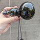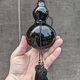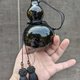 【作品名称】:天然大漆酒葫芦,葫芦表面为黑漆地洒金葫芦,双吉祥扣流苏挂饰。