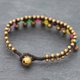这款手工编织手链采用深棕色棉质蜡线与石头编织而成