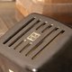 灯罩采用了极简的黑色方块几何造型,搭配底座俐落的 Helvetica 字体 Logo,没有一丝多余的线条。