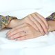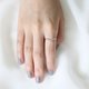 刚刚好的曲线弧度是这支钻石戒指美感的来源。爪镶镶嵌钻石显得更细致、优雅。配戴时可喜好叠戴其他戒指,尖端朝外配戴让手指在视觉效果上更显修长。