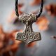 Mjolnir由实心青铜制成。 这种维京装饰是献给异教诸神的。这个吊坠是在瑞典发现的一件宝物的复制品。 我们的珠宝采用优质青铜制成,经过精致的熏黑和手工抛光。