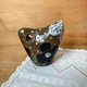 手做心形刻花花器,深色的坯体再画上黑、白色化妆土的不同单色的花朵后,刻出花朵内的细微图案,表现出层次感,最后再加上金色圆点,经过多道工序而完成的作品,优雅中带着些许的童趣。