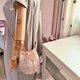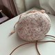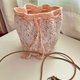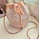 - 使用蕾丝线双线编织而成的束口袋 里面可以使用的空间算蛮大的 斜背的包袋是真皮的