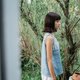 轻盈棉质印花,搭配亚麻布料的对比质感。 背后开衩设计,配有木质钮扣。
