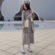 ∞蓝灰色布银色金属拉链,与灰色条纹织带相互辉映