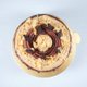 现烤的巧克力蛋糕,夹馅是浓郁的焦糖幕斯;装饰上浓郁甘纳许与巧克力幕斯,撒上杏仁片,巧克力饼干酥饼。