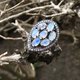 蓝色月光石镶在镀了黑色K金戒台上多了几分神秘气息,