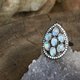 这种接近微镶的款式,选用的月光石颗颗带蓝光,整圈的小苏联钻是一颗一颗爪镶、而非黏上去的,所以不会有时间久了胶水变黄影响宝石成色的问题,做食指戒也很美。