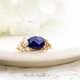青金石拥有沉静而高雅的宝蓝色泽,极为美丽。宝石表面经过切割,随着手的动作每一次都闪耀着动人的光芒。其中还可见如金色粉末般的黄铁矿,让每一颗宝石都显得独一无二。