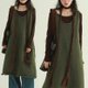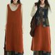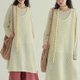 4顏色 大圓領鏤空疊穿開叉洋裝 日系休閒寬松無袖針織背心長裙 - 洋装/连衣裙 - 其他人造纤维 卡其色