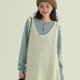 4顏色 大圓領鏤空疊穿開叉洋裝 日系休閒寬松無袖針織背心長裙