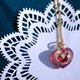 作品外形呈心形琉璃晶石,以不平滑的表面作折射效果。石子内有用上珍贵金银气化(fuming)的技巧作蓝绿色极光般的景像, 仿如石子锁着浪漫的极光夜空,并泛出触及不到的心形蛋白石,深深锁紧你心。