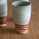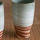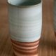 瓷土混合氧化铁经过练土、混土、拉坯、修坯成形,完成搅胎作品。每一件搅胎作品都有不同的纹路。没有上釉的抷体在经过釉烧后,再经过研磨,让使用者能够触摸到陶土的肌理。这件作品使用还原瓦斯窑烧制。烧成温度为1240度。