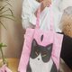 TOTE PRINT WITH CAT PINK ● Size W33.5xH38.5 cm. ● Canvas print ● One pocket inside