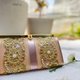 我们精心挑选了带有美丽可爱风格的印度刺绣缎带,以及富有光泽感的缎带,一片一片仔细挑选后进行组合设计,将它们制作成一片独特的布料,并以此作为长夹表面的设计。