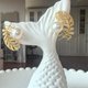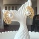 7.5-8mm的akoya珍珠表面泛着彩虹光一样的炫彩光芒,纱织小姐为其配以 S5925银14K注金的AB款金色羽毛配件,取名《轻羽飞扬》,表现端庄而秀雅的独特气质,更强调清秀美好的下颌骨轮廓。拿到手里,你一定会惊叹于它设计的精巧和做工的精湛。愿它能为你的美貌再添一点光芒!