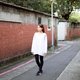 宽松的领口加上拼接设计让女孩的肩膀变小,