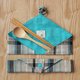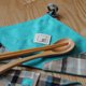 “日常”餐具套|附筷子和汤匙|手工棉麻布|米黑蓝格+彩蓝麻