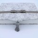Decorated with ribbons and tassels that match the lace-patterned cloth, it is finished in a calm and mature cute work with a monotone of gray and white.