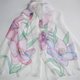 - Chic exclusive hand-painted silk scarf with a floral pattern. Woman scarf is painted by me on natural silk chiffon with professional paints. This scarf is unique! It's perfect as a gift! White long silk scarf, large wrap floral scarf, designer silk chiffon hair scarf for women. It's large, lightweight, delicate and cuddly.