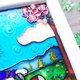 为了创造一个体积效果,摩托车骑行的道路装饰着由天然彩色珍珠母创造的马赛克。 苹果树装饰有丙烯酸水钻,李子树装饰有天然萤石珠。 所有装饰元素都用可靠的胶水牢固固定。